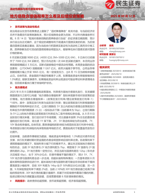 【民生证券】【20250812】流动性跟踪与地方债策略专题:地方债隐含增值税率怎么看及后续投资策略-22页