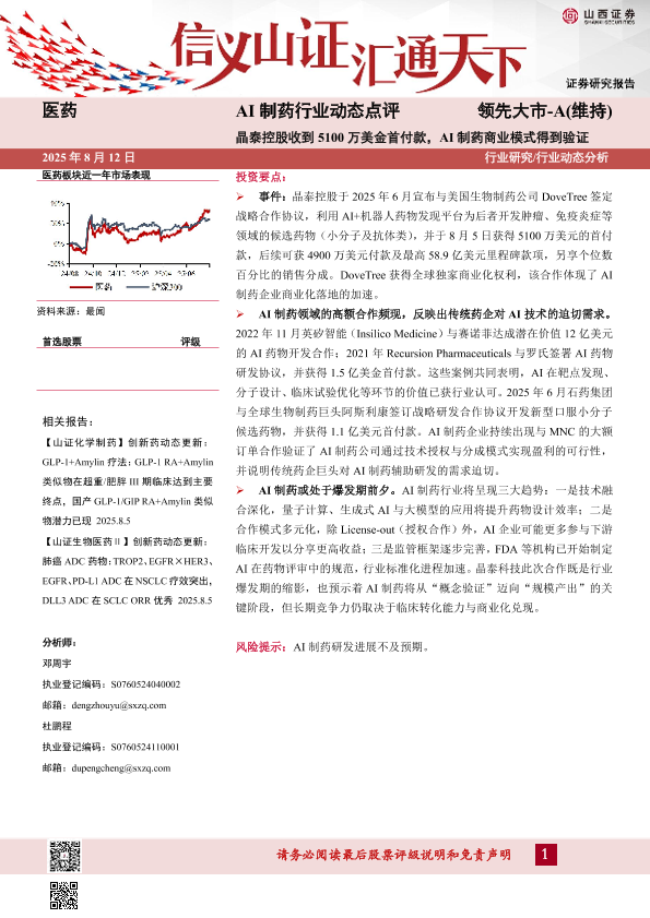 【山西证券】【20250812】AI制药行业动态点评:晶泰控股收到5100万美金首付款,AI制药商业模式得到验证-3页