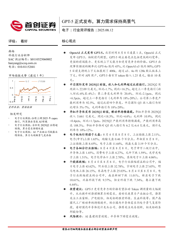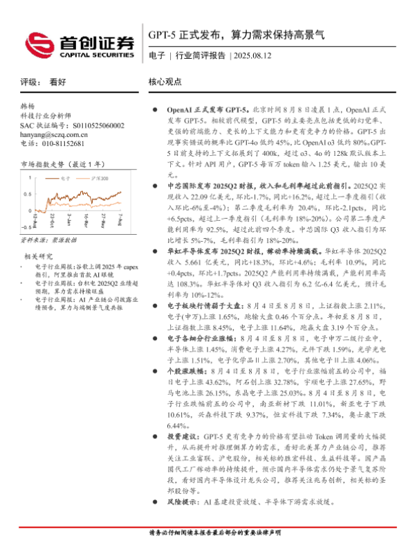 【首创证券】【20250812】电子行业简评报告:GPT-5正式发布,算力需求保持高景气-6页