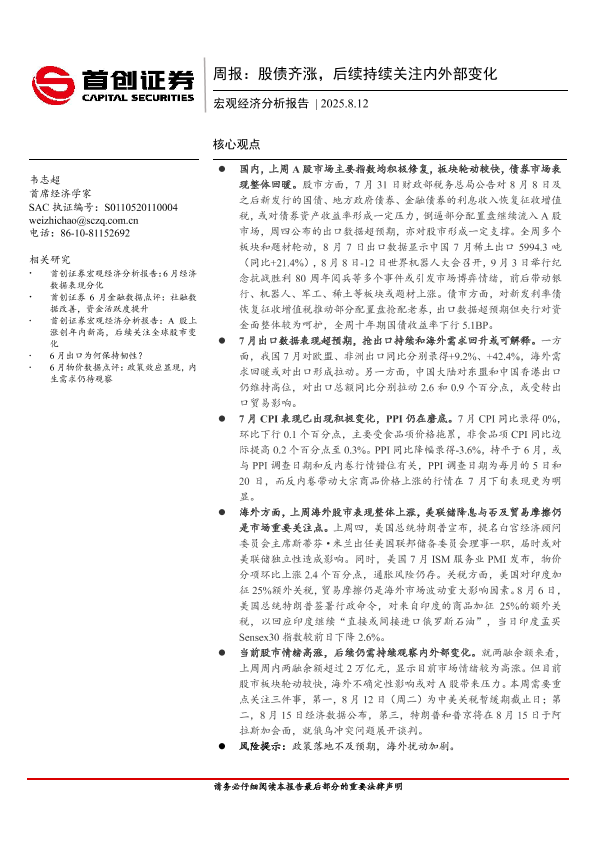 【首创证券】【20250812】周报:股债齐涨,后续持续关注内外部变化-9页