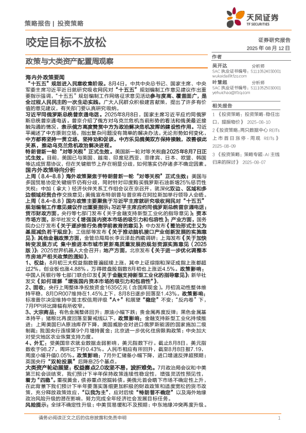 【天风证券】【20250812】政策与大类资产配置周观察:咬定目标不放松-22页