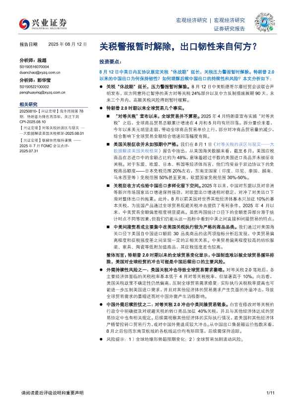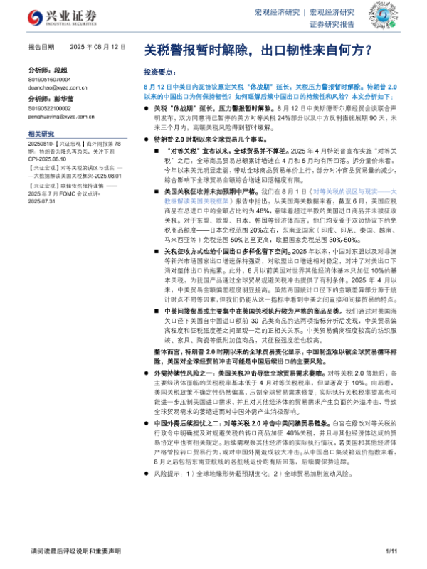 【兴业证券】【20250812】关税警报暂时解除,出口韧性来自何方?-11页