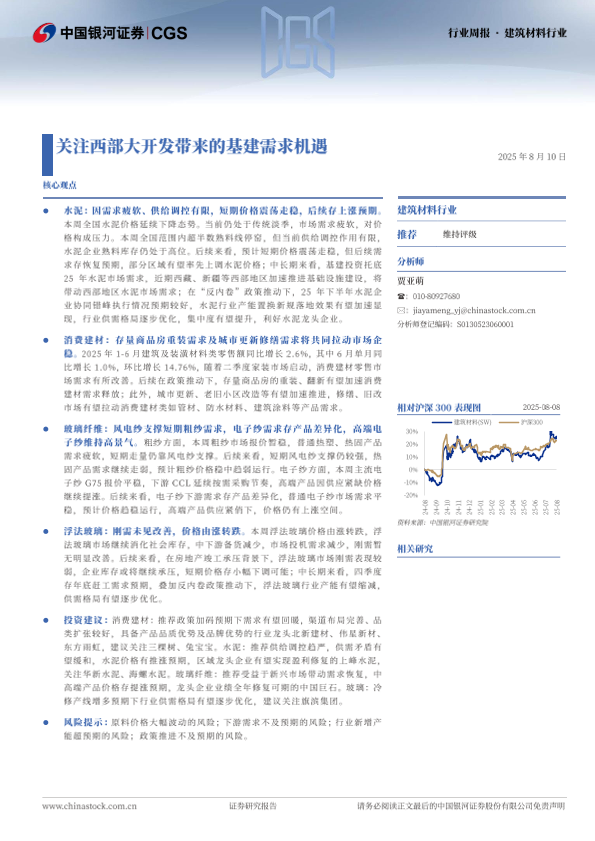 【银河证券】【20250810】银河证券-建筑材料行业周报:关注西部大开发带来的基建需求机遇-14页