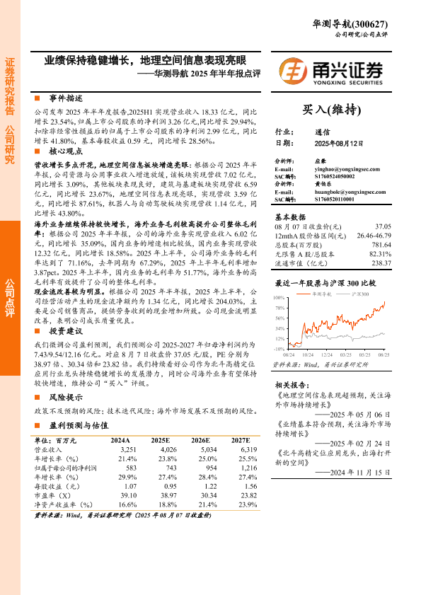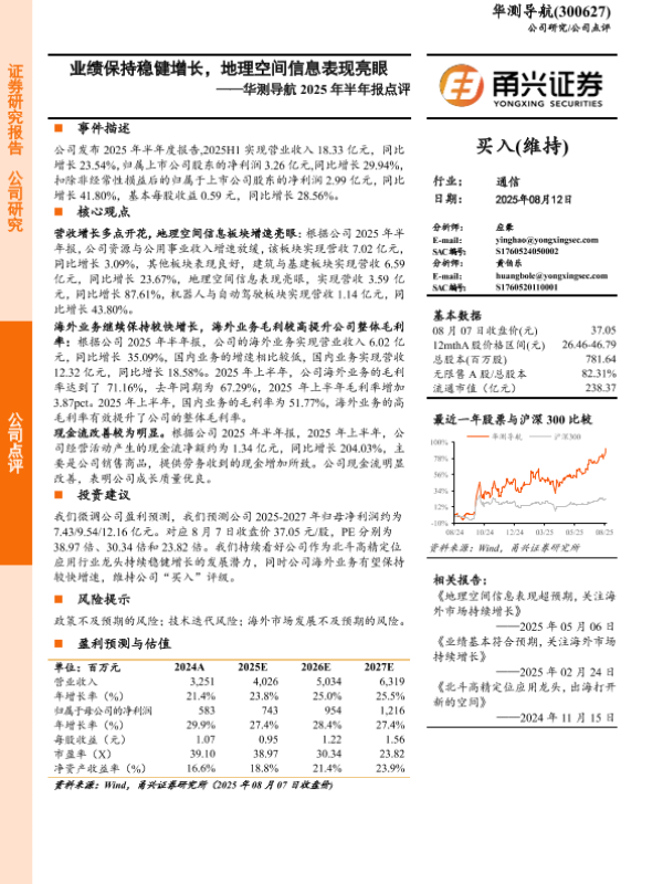 【甬兴证券】【20250812】华测导航2025年半年报点评:业绩保持稳健增长,地理空间信息表现亮眼-4页