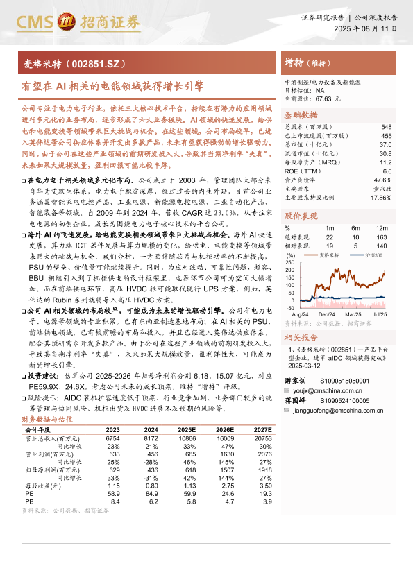 AI服务器电源 麦格米特 人工智能 电力电子 增长引擎