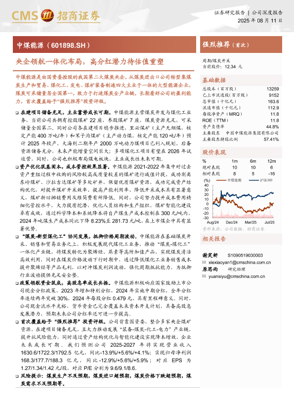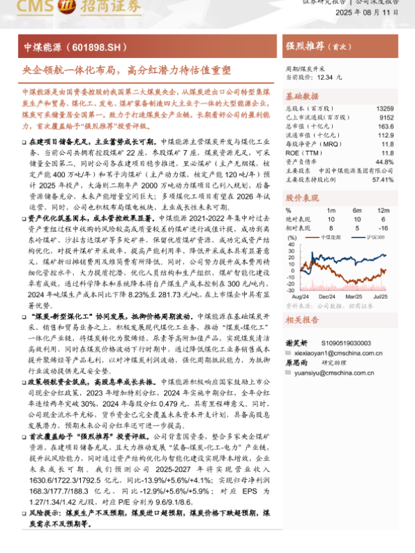【海通证券】【20250811】中煤能源:央企领航一体化布局,高分红潜力待估值重塑-26页