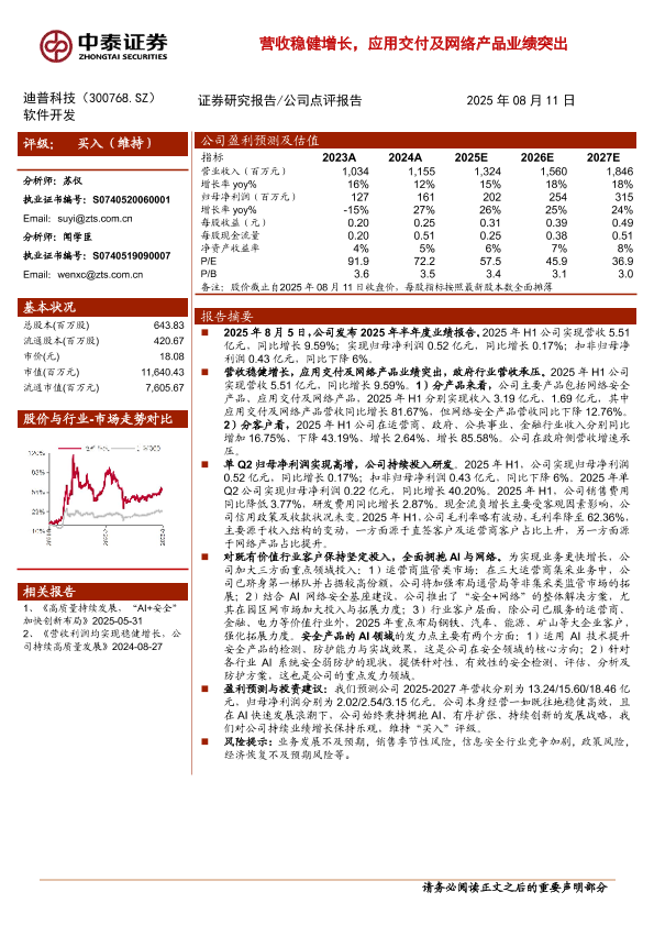 【中泰证券】【20250811】营收稳健增长,应用交付及网络产品业绩突出-3页