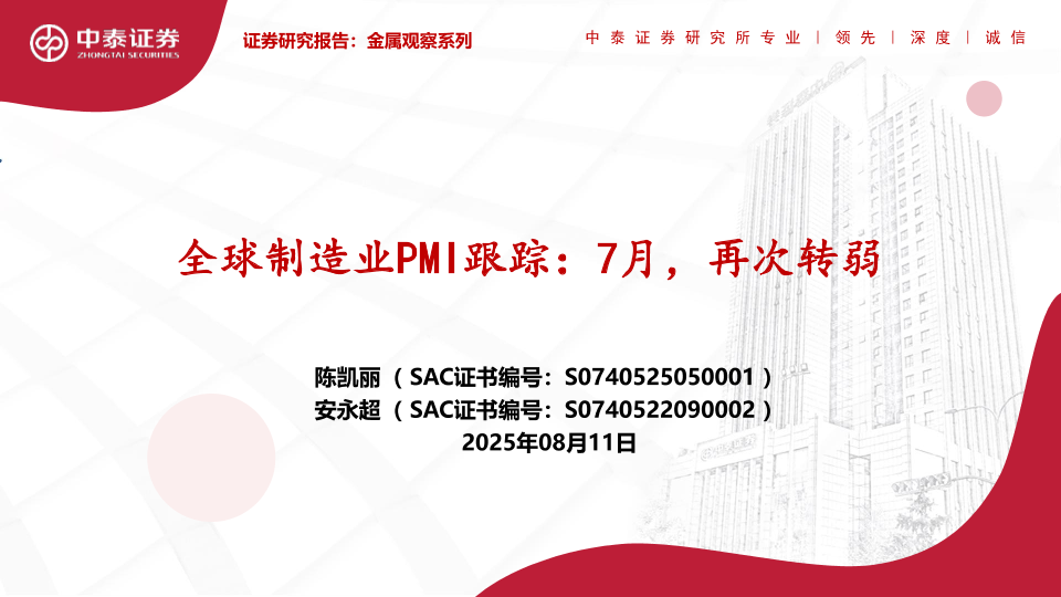 【中泰证券】【20250811】全球制造业PMI跟踪:7月,再次转弱-31页