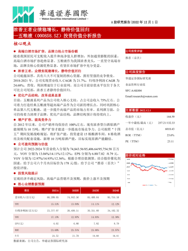 【华通证券国际】【20221201】浓香王者业绩稳增长,静待价值回归 —五粮液(000858.SZ)投资价值分析报告-31页