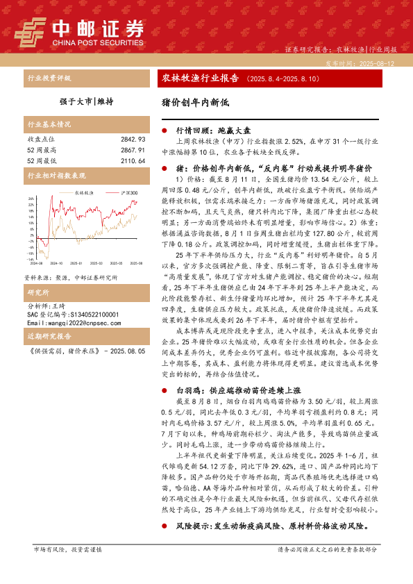 【中邮证券】【20250812】农林牧渔行业周报:猪价创年内新低-12页