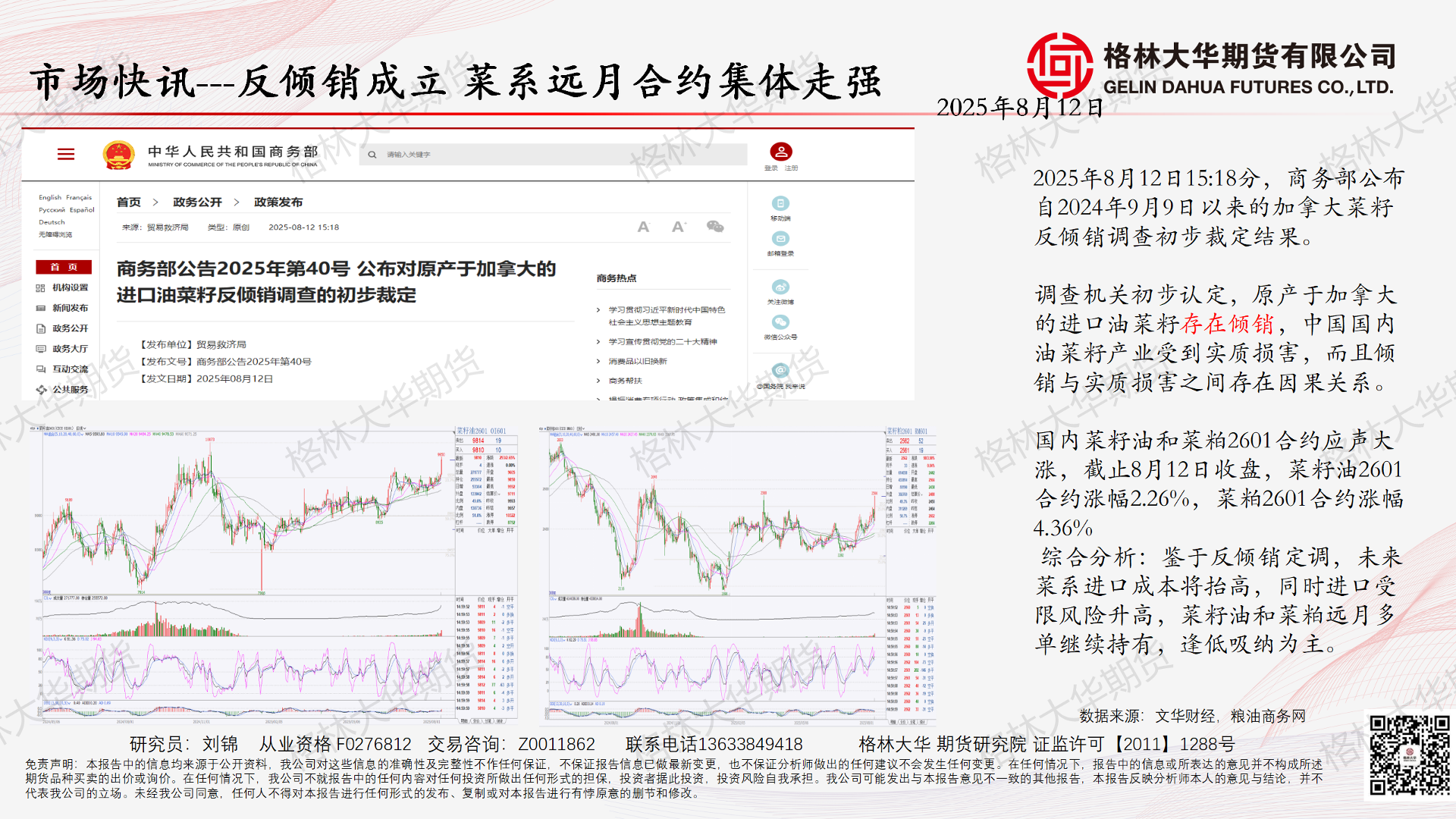 【格林大华期货】【20250812】市场快讯:反倾销成立,莱系远月合约集体走强-1页