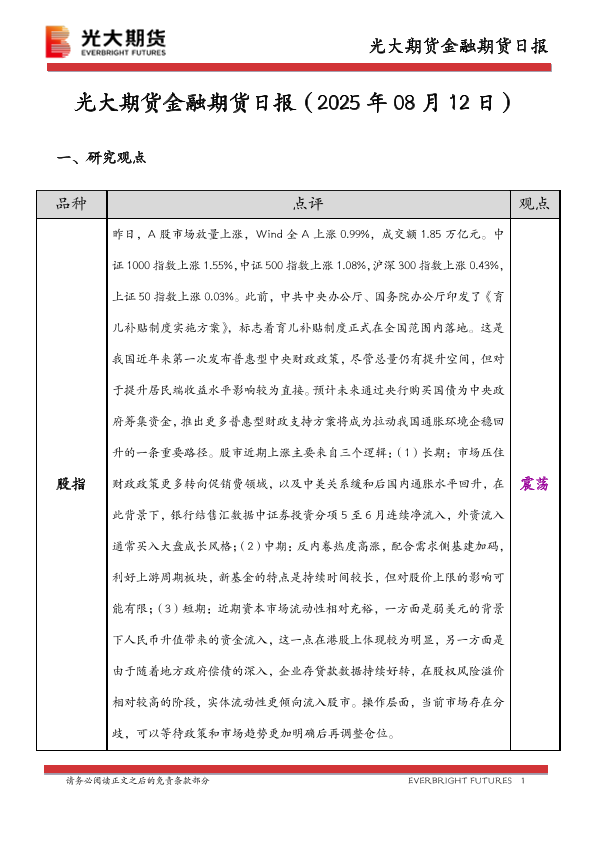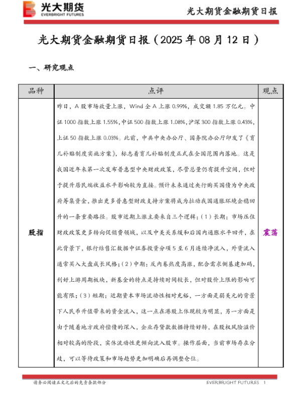 【光大期货】【20250812】金融期货日报-10页
