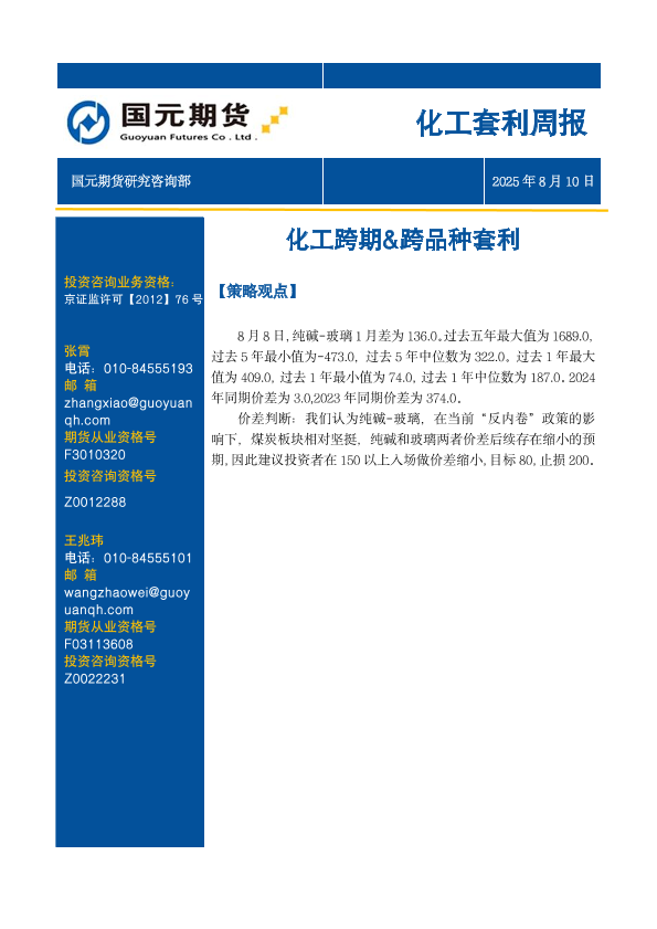 【国元期货】【20250810】化工跨期&跨品种套利-26页