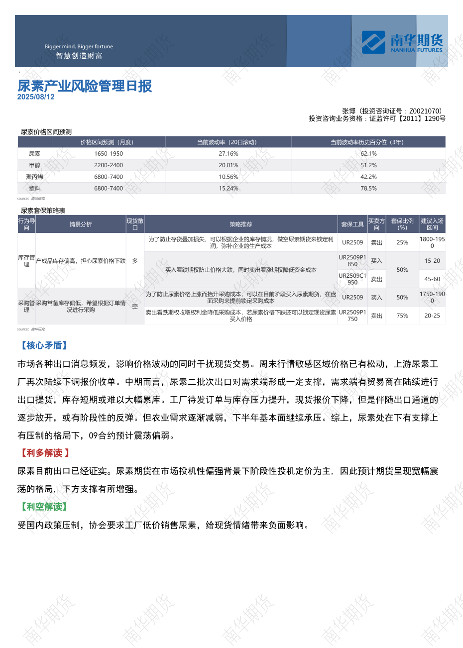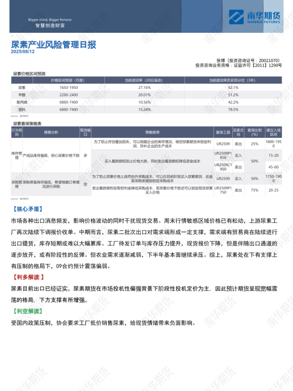 【南华期货】【20250812】尿素产业风险管理日报-3页