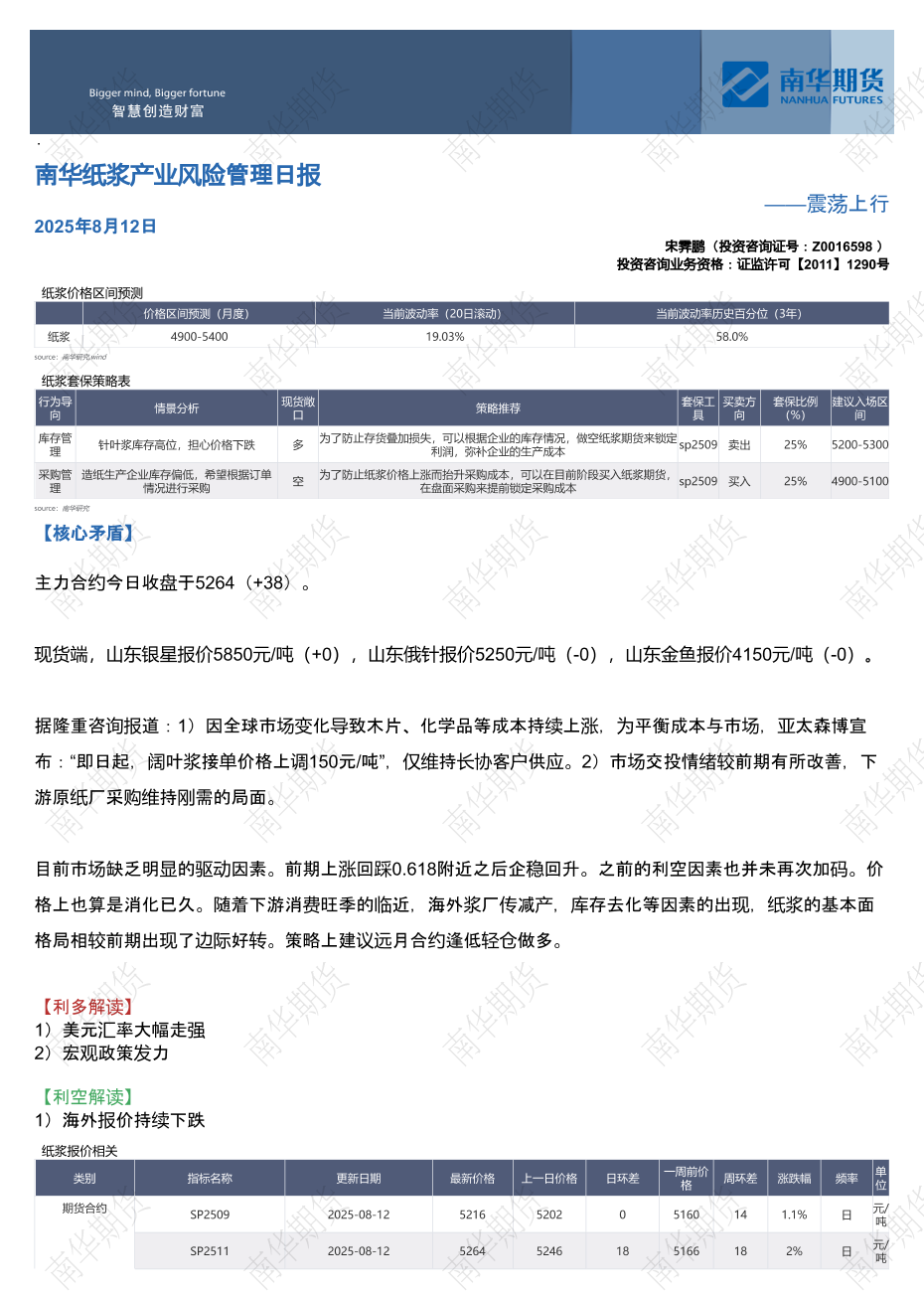 【南华期货】【20250812】纸浆产业风险管理日报:震荡上行-3页
