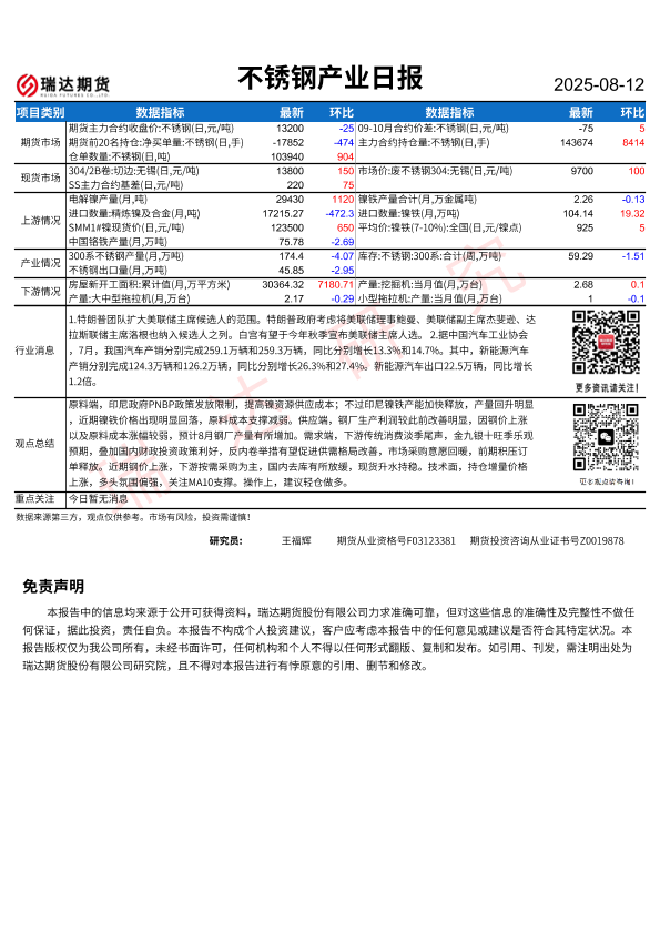 【瑞达期货】【20250812】不锈钢产业日报-1页