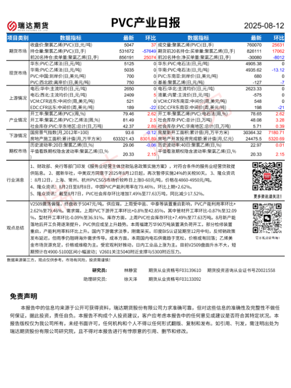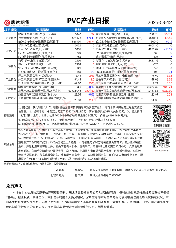 【瑞达期货】【20250812】PVC产业日报-1页