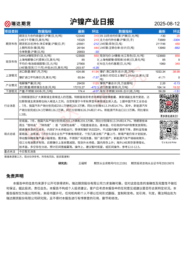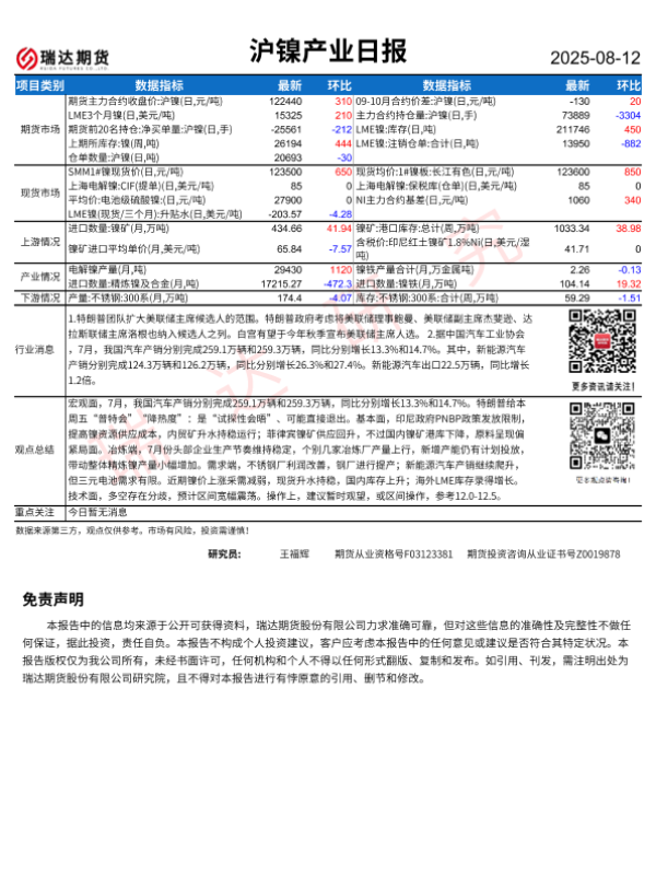 【瑞达期货】【20250812】沪镍产业日报-1页