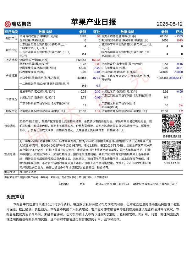 【瑞达期货】【20250812】苹果产业日报-1页