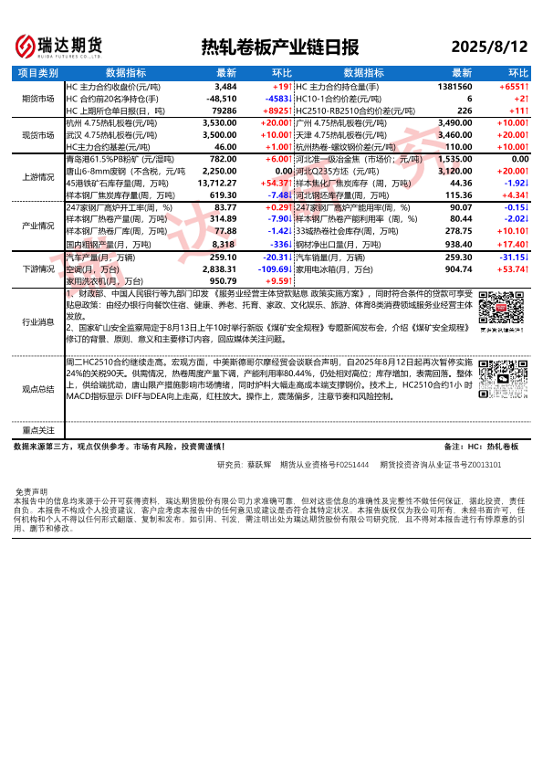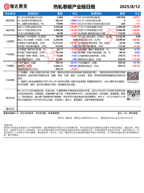 【瑞达期货】【20250812】热轧卷板产业链日报-1页