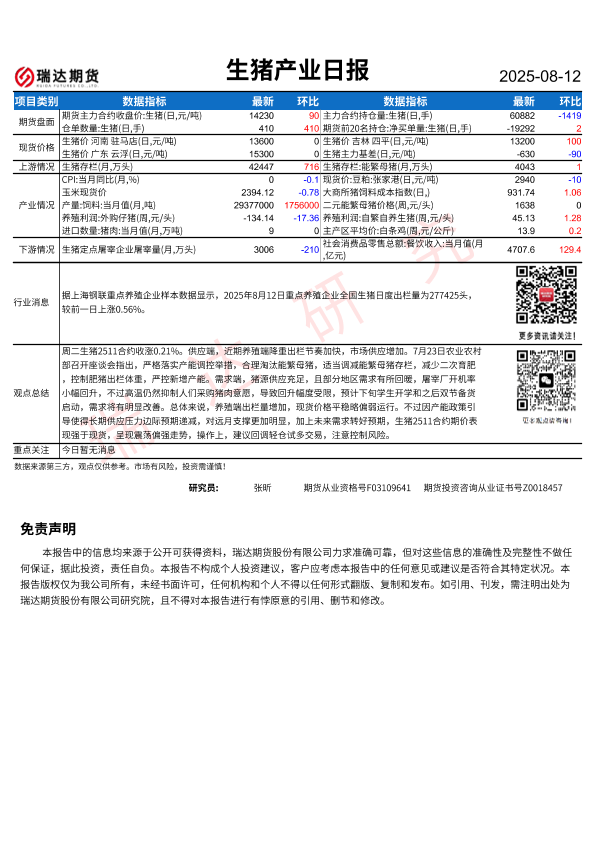 【瑞达期货】【20250812】生猪产业日报-1页