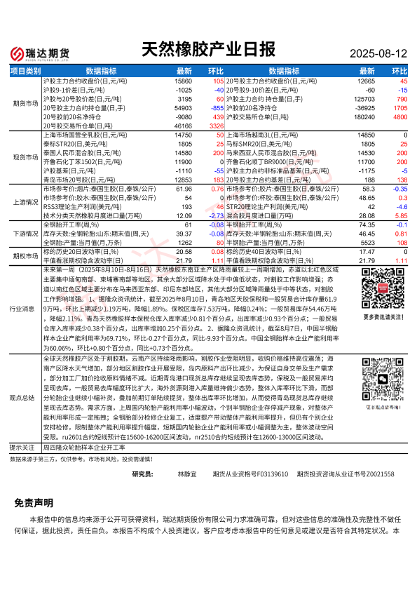 【瑞达期货】【20250812】天然橡胶产业日报-2页