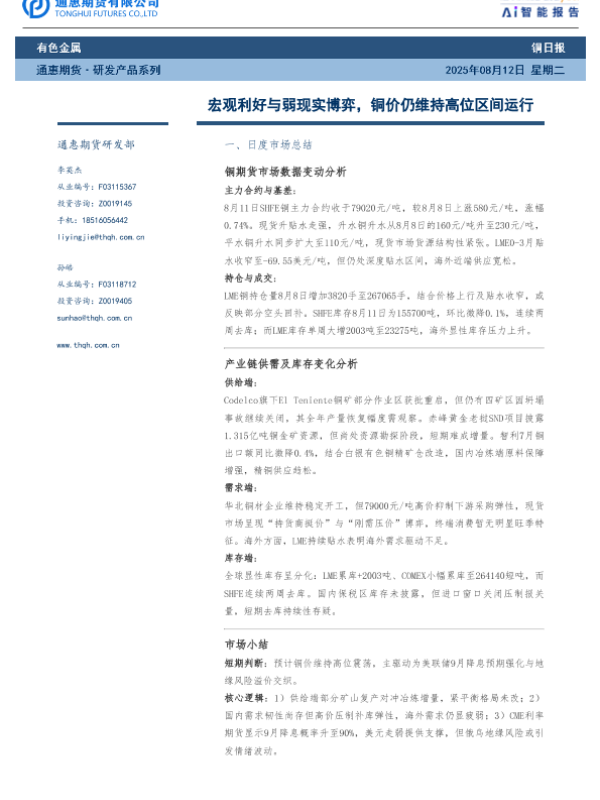 【通惠期货研发部】【20250812】通惠期货-铜日报:宏观利好与弱现实博弈,铜价仍维持高位区间运行-7页