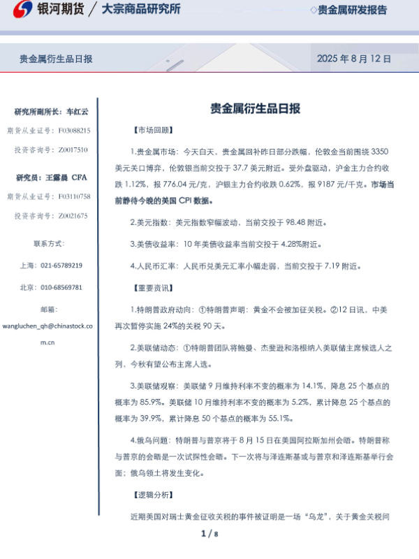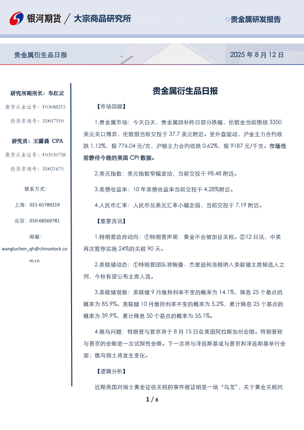 【银河期货】【20250812】贵金属衍生品日报-8页