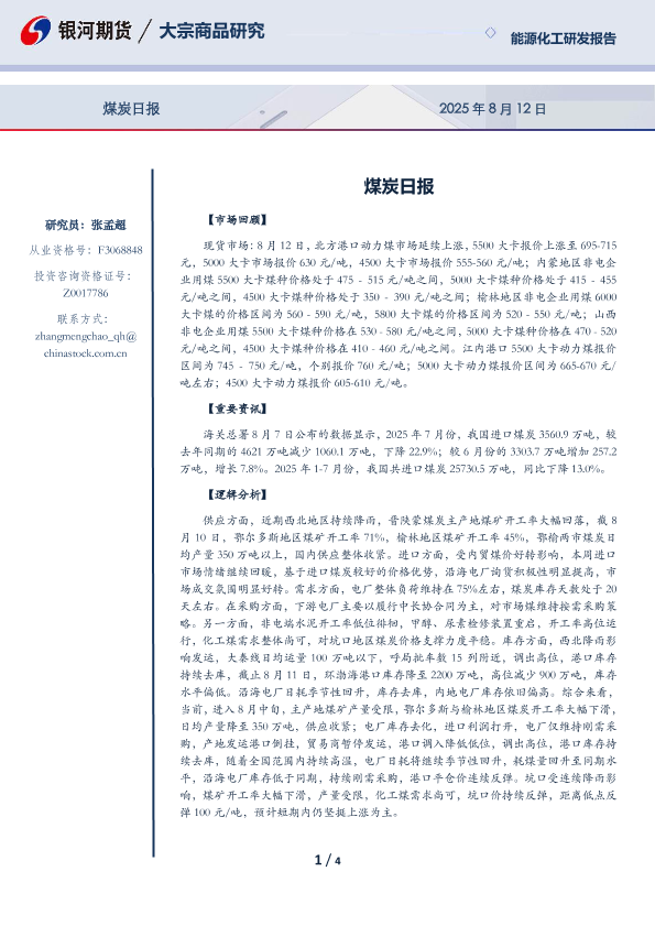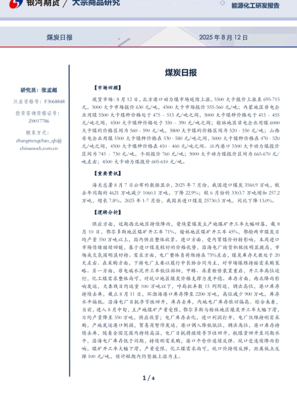 【银河期货】【20250812】煤炭日报-4页