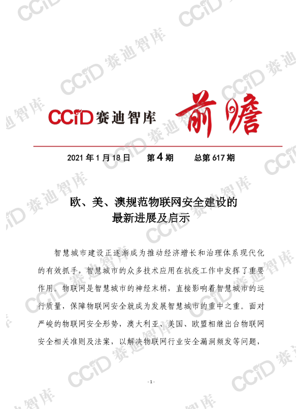 【未提及具体出品方】【2021】欧、美、澳规范物联网安全建设的最新进展及启示-9页