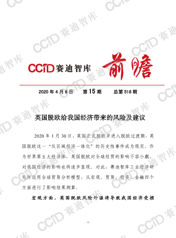 【赛迪智库工业经济研究所】【20200406】英国脱欧给我国经济带来的风险及建议-7页