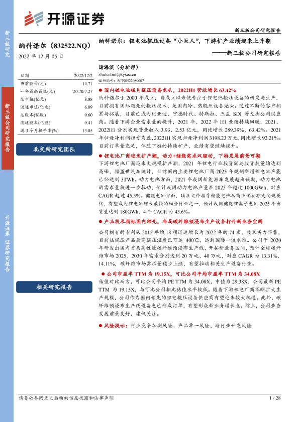 【开源证券】【20221205】新三板公司研究报告:纳科诺尔:锂电池辊压设备“小巨人”,下游扩产业绩迎来上升期-28页