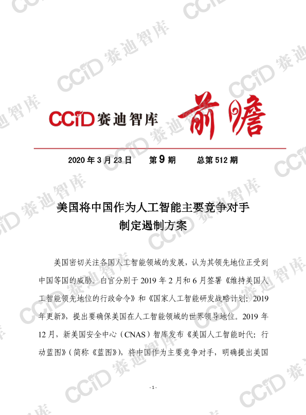 【新美国安全中心(CNAS)】【20200323】美国将中国作为人工智能主要竞争对手制定遏制方案-7页