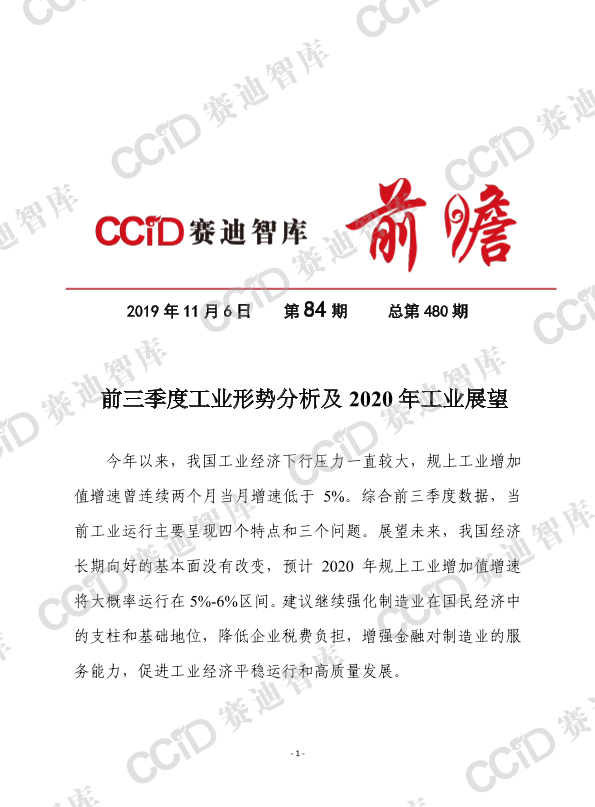 【赛迪智库】【20191106】前三季度工业形势分析及2020年工业展望-11页