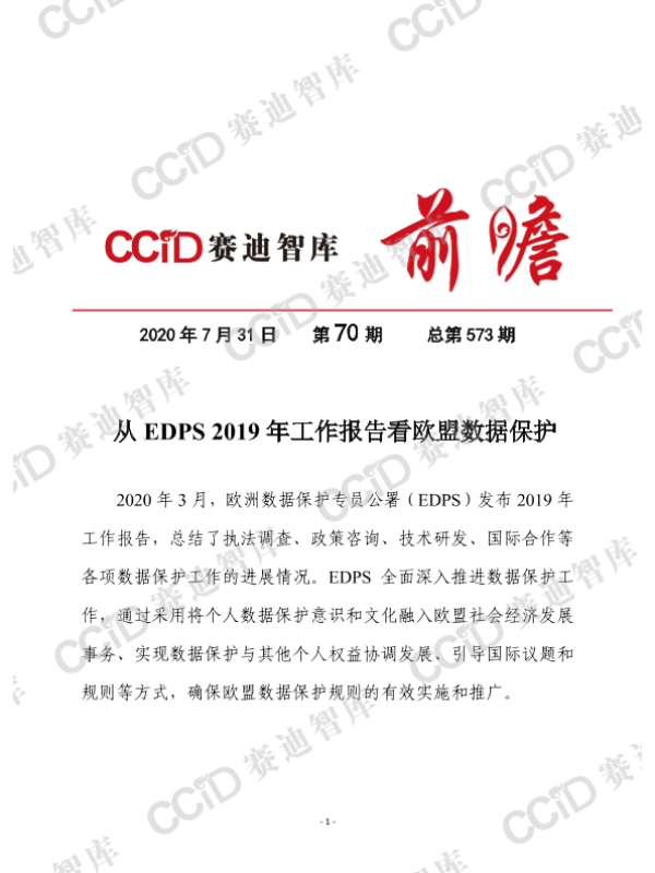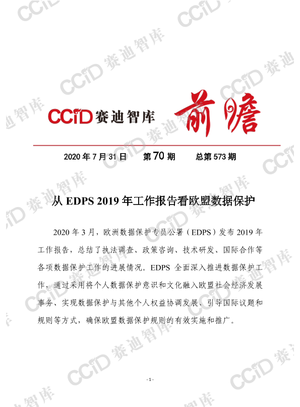 【欧洲数据保护专员公署(EDPS)】【202003】从EDPS2019年工作报告看欧盟数据保护-12页