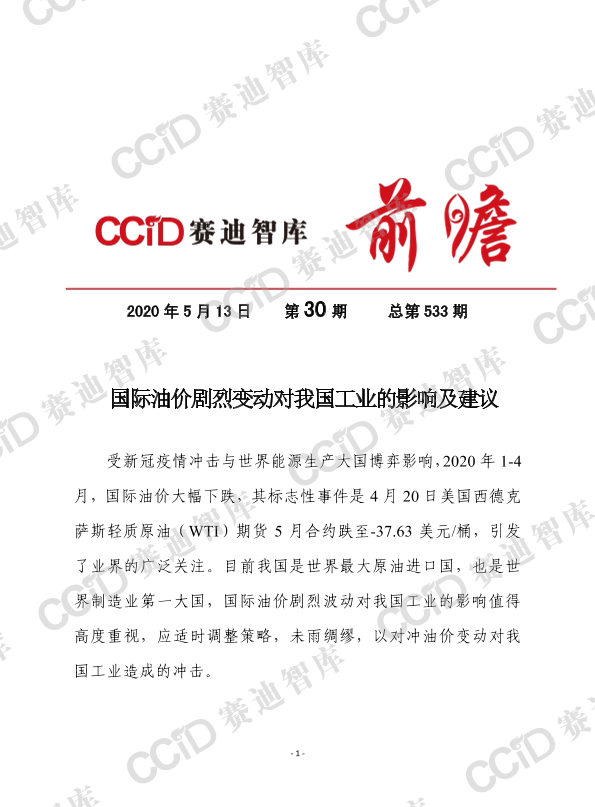 【赛迪智库】【20200513】国际油价剧烈变动对我国工业的影响及建议-11页