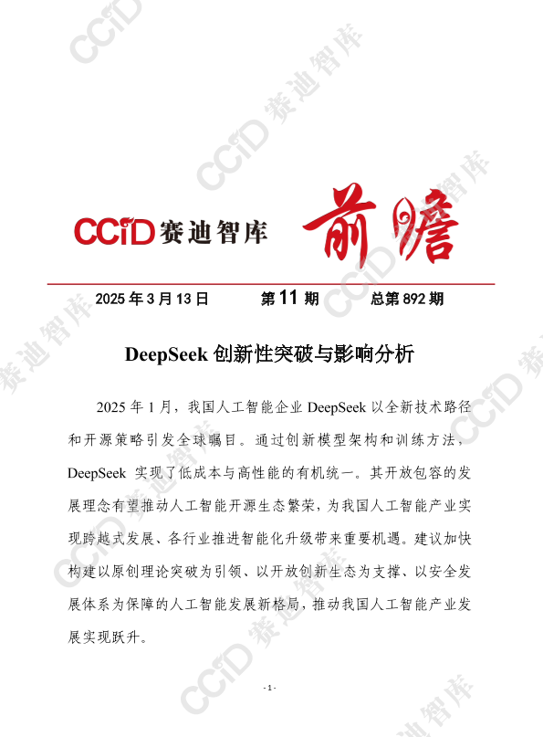 【赛迪前瞻】【20250313】DeepSeek创新性突破与影响分析-11页