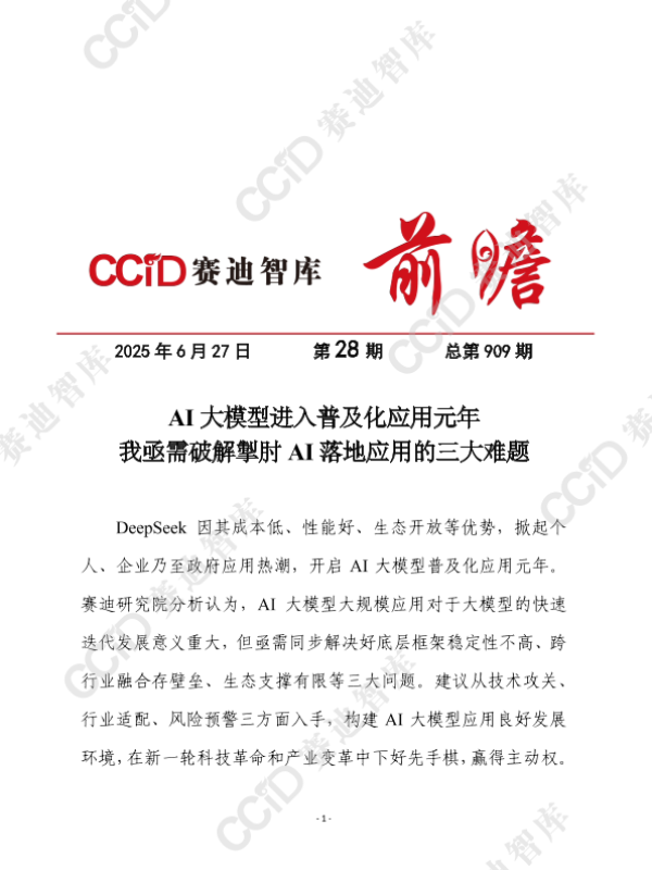 【赛迪研究院】【20250627】AI大模型进入普及化应用元年,我亟需破解掣肘AI落地应用的三大难题-9页