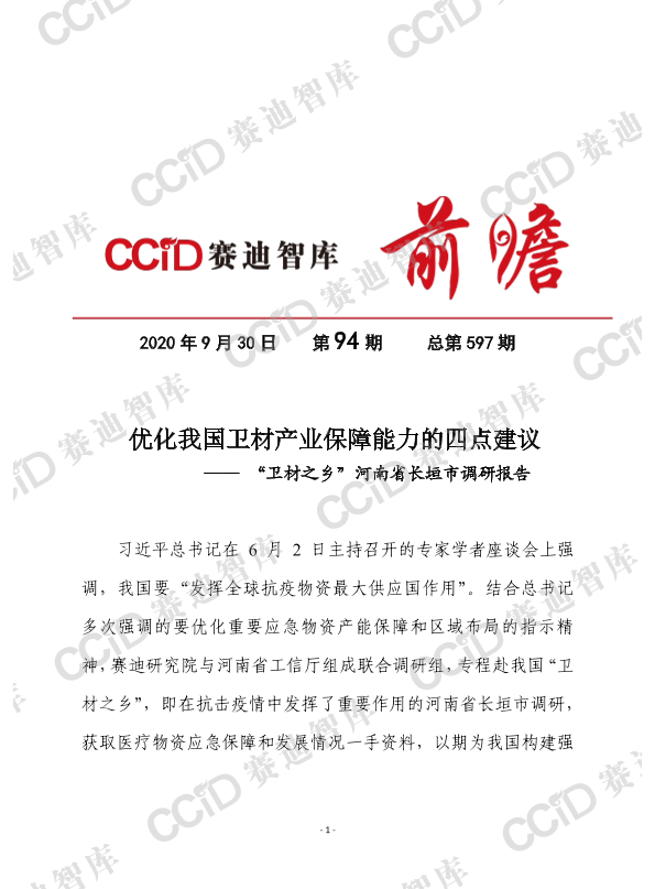 【赛迪研究院与河南省工信厅联合调研组】【20200930】优化我国卫材产业保障能力的四点建议-10页
