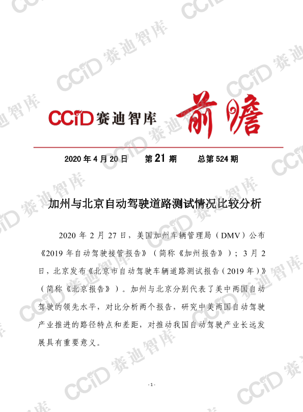 【赛迪智库】【20200420】加州与北京自动驾驶道路测试情况比较分析-11页