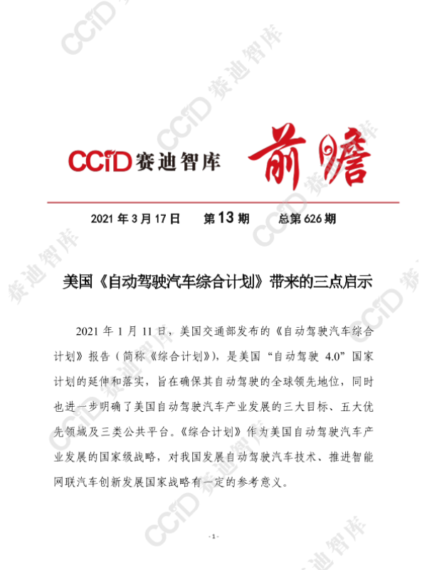 【美国交通部】【20210111】美国《自动驾驶汽车综合计划》带来的三点启示-10页