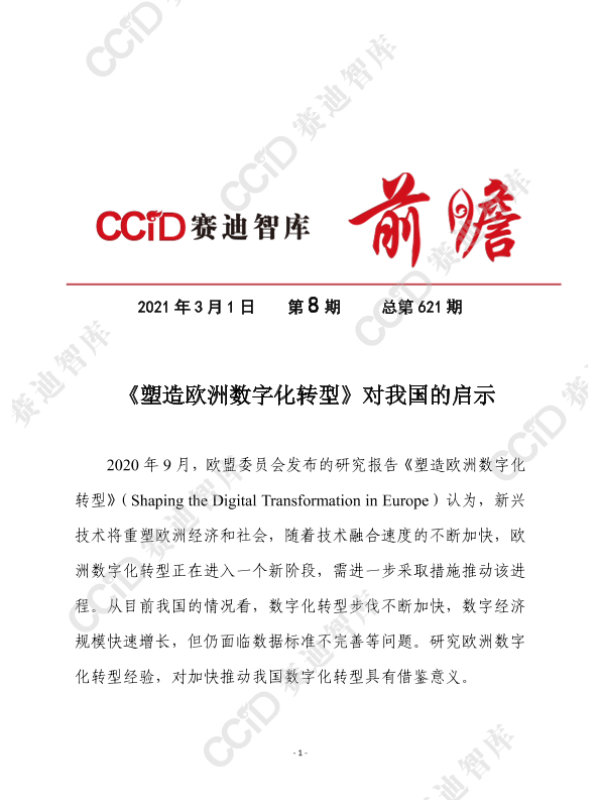 【欧盟委员会】【202009】《塑造欧洲数字化转型》对我国的启示-10页