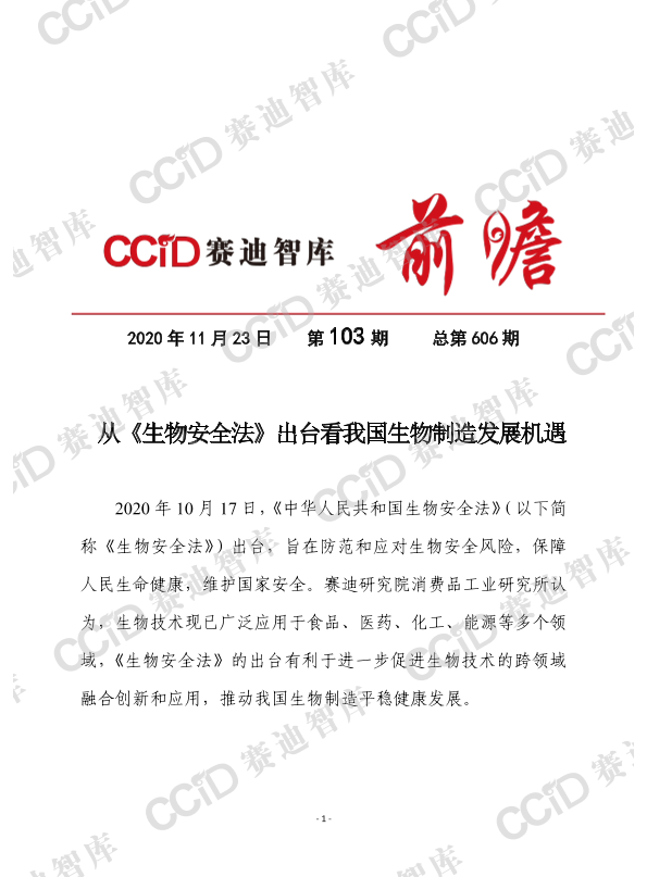 【赛迪研究院消费品工业研究所】【20201123】从《生物安全法》出台看我国生物制造发展机遇-11页