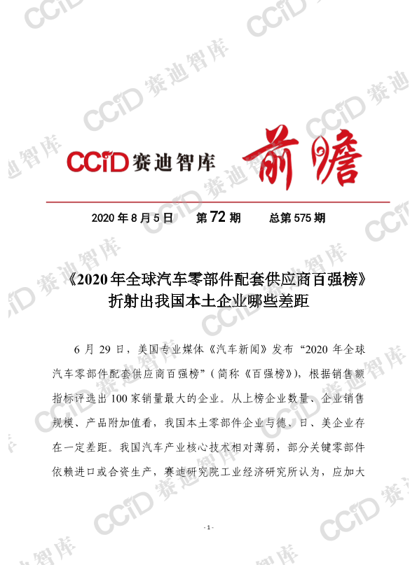 【赛迪研究院工业经济研究所】【20200805】2020年《全球汽车零部件配套供应商百强榜》折射出我国本土企业哪些差距-10页