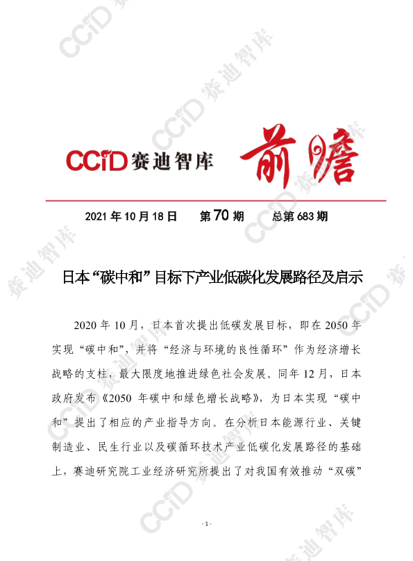 【赛迪研究院工业经济研究所】【20211018】日本“碳中和”目标下产业低碳化发展路径及启示-11页
