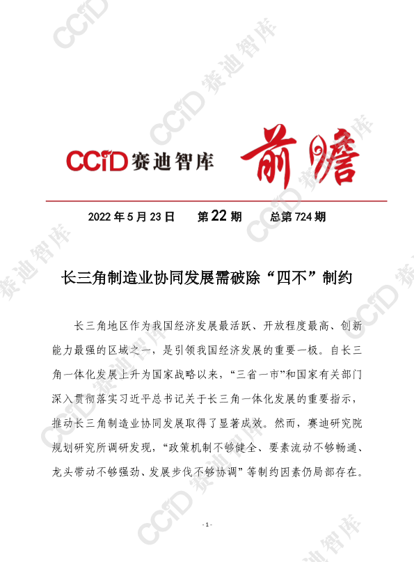 【赛迪研究院规划研究所】【20220523】长三角制造业协同发展取得显著成效“十四五”时期仍需破除“四不”制约-10页