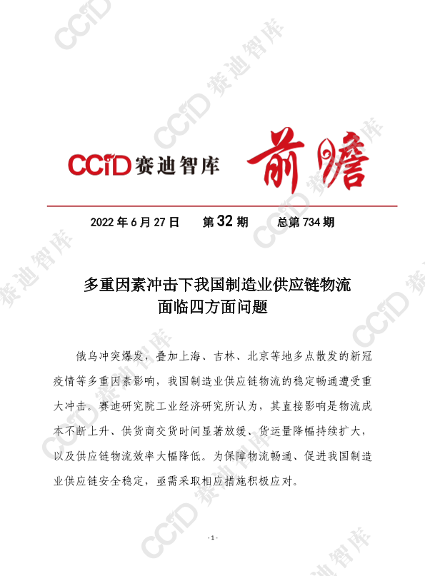 【赛迪研究院工业经济研究所】【20220627】多重因素冲击下我国制造业供应链物流面临四方面问题-9页