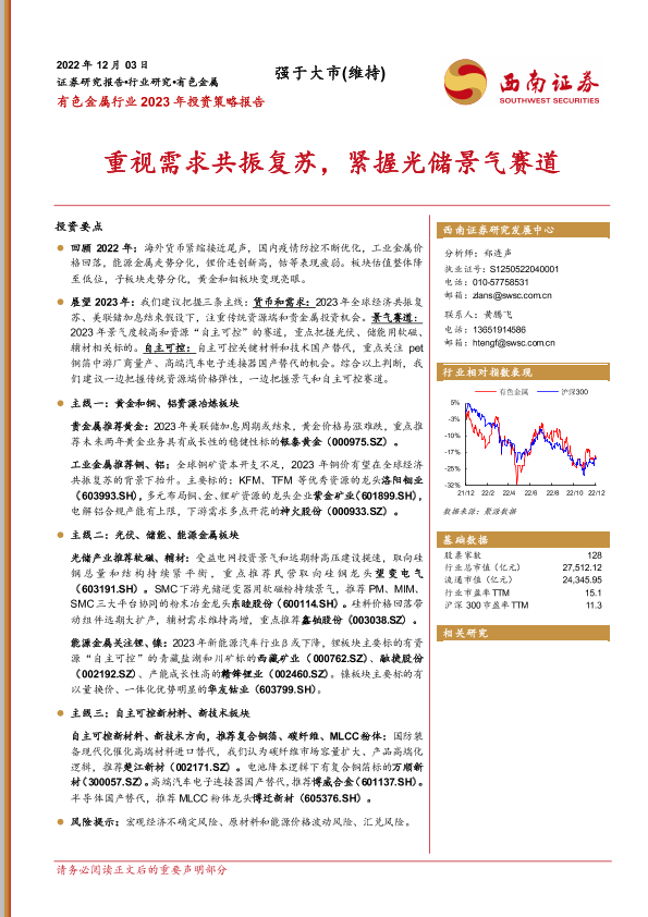 【西南证券】【20221203】有色金属行业2023年投资策略报告:重视需求共振复苏,紧握光储景气赛道-64页