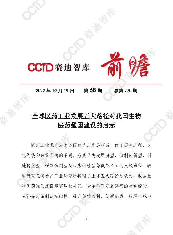 【赛迪研究院消费品工业研究所】【20221019】全球医药工业发展五大路径对我生物医药强国建设启示-15页