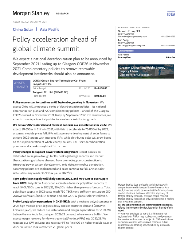 【Morgan Stanley】【20210818】中国太阳能行业-全球气候峰会前政策加速-46页